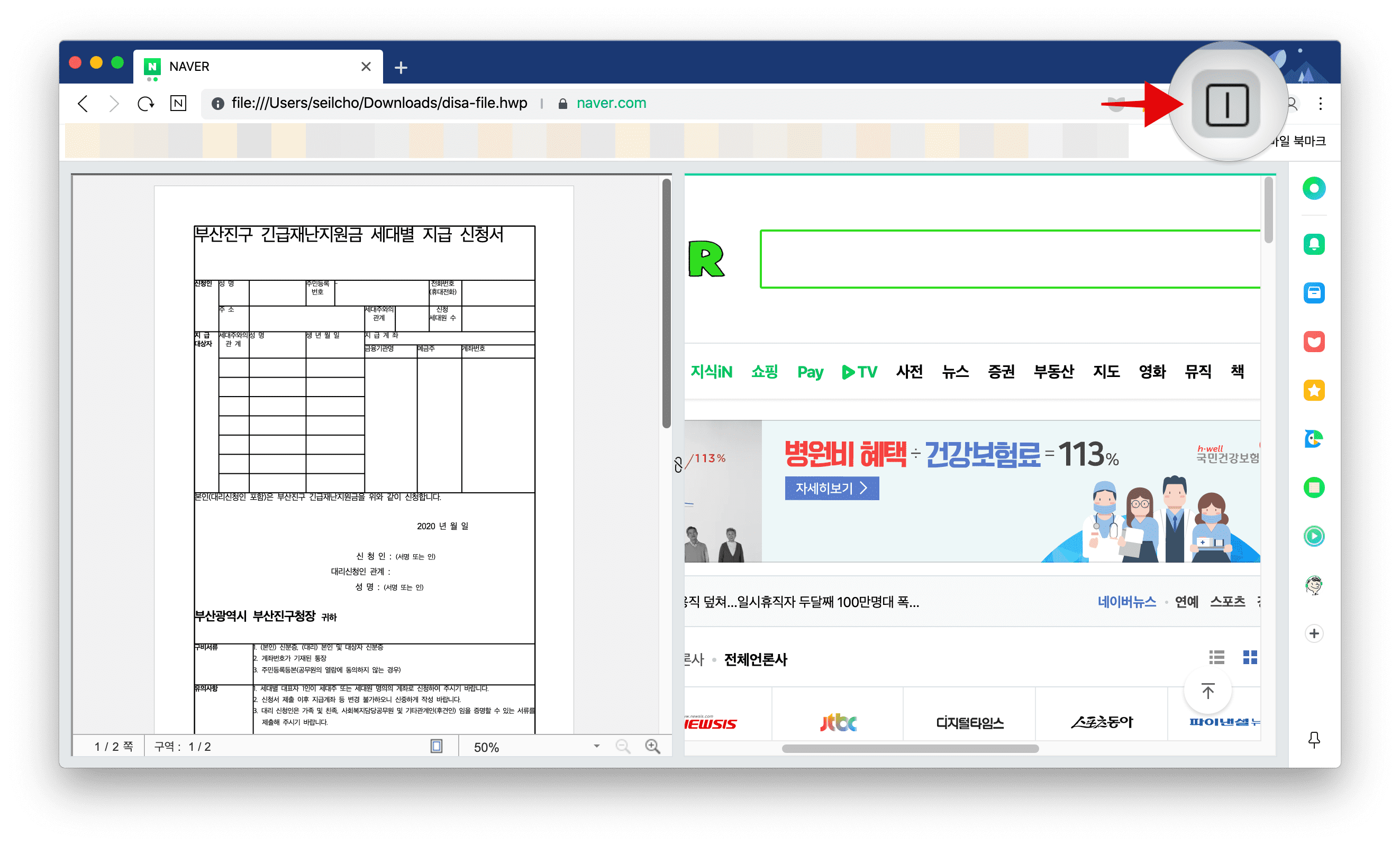ํ๊ธ (hwp) ํ์ผ์ ๋ค์ด๋ฒ ์จ์ผ์ ๋๋๊ทธ & ๋๋กญ์ผ๋ก ์ฎ๊ฒจ์ ๋ณด๊ธฐ